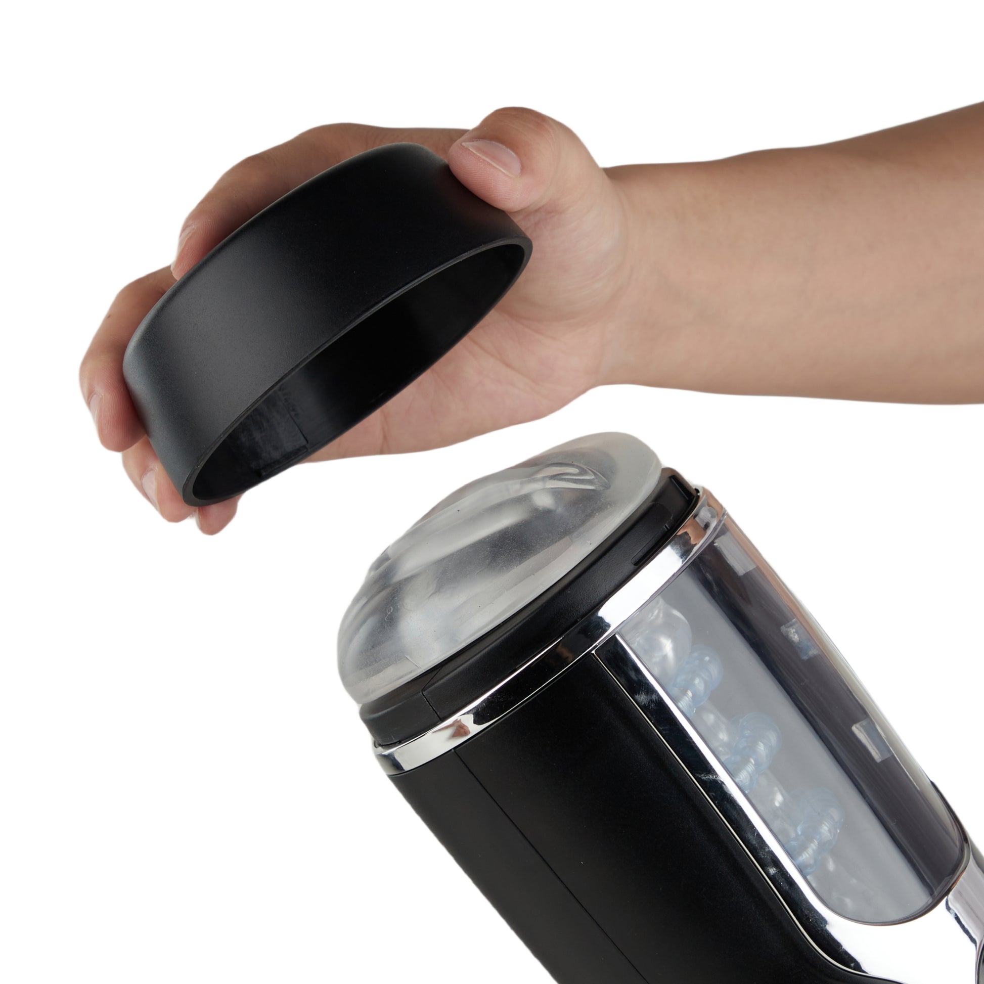 2. Das innovative Design umschließt Ihren Penis mit einer verführerischen Kombination aus wirbelnden Perlen und Druck.